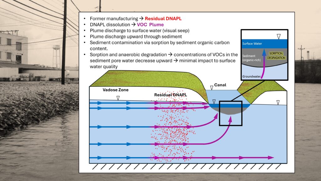 My work provided key insights into contaminant dynamics in sediment and groundwater at the site. The findings had direct implications for remedial decision-making: